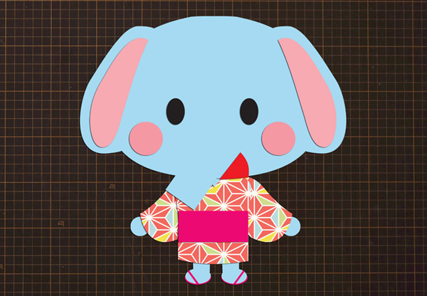 ★無料ダウンロード型紙「ぞう 夏祭りバージョン」夏 祭り7月 8月 浴衣 花火 幼稚園 保育園 老人ホーム 介護施設 デイサービス 壁面装飾 型紙 製作 イベント タイトル★