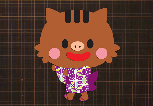 ★無料ダウンロード型紙「いのしし 夏祭りバージョン」夏 祭り7月 8月 浴衣 花火 幼稚園 保育園 老人ホーム 介護施設 デイサービス 壁面装飾 型紙 製作 イベント タイトル★